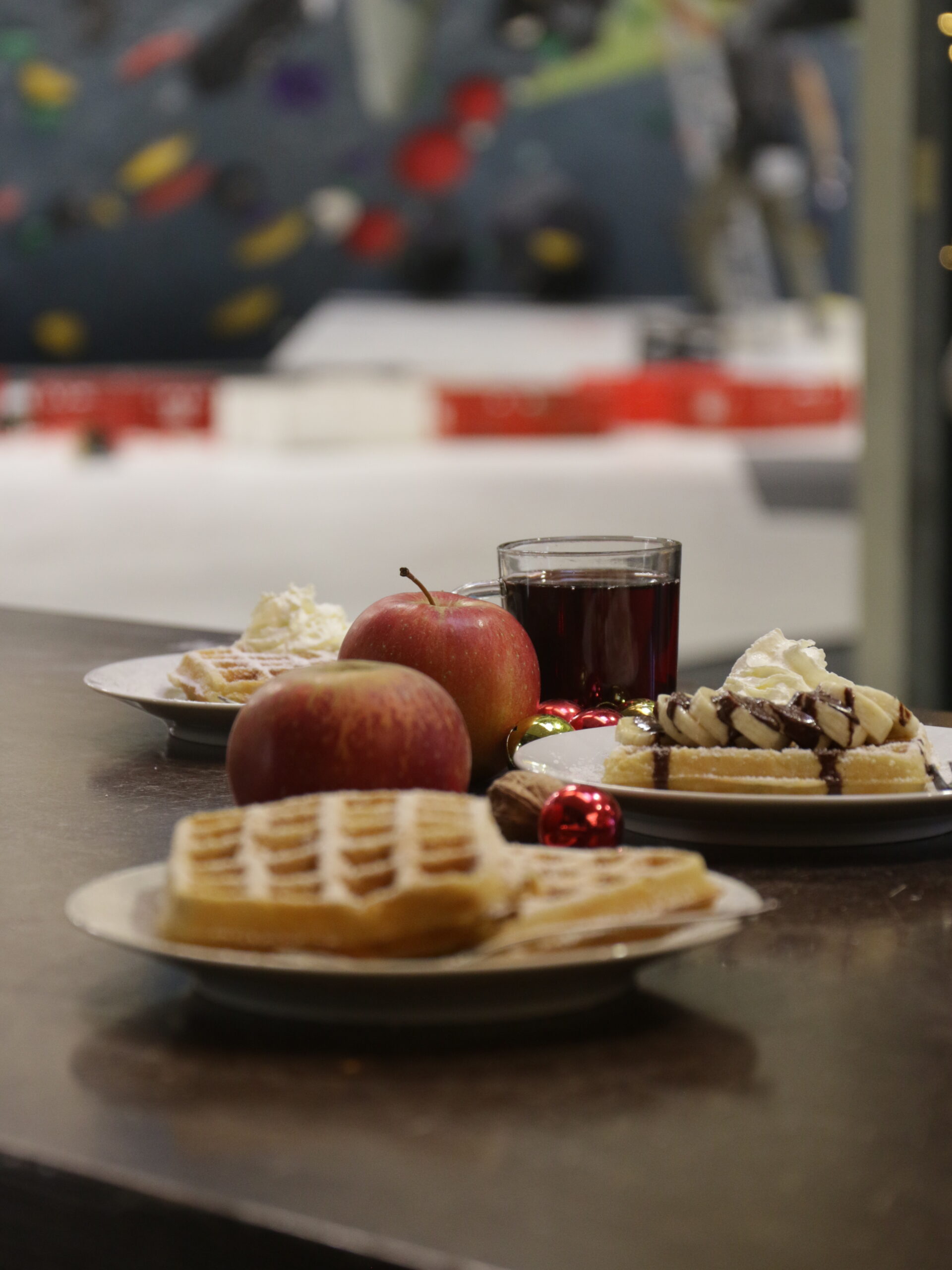 Im Dezember erwartet euch bei uns etwas Besonderes: hausgemachte Waffeln und heißer Glühwein! Perfekt, um nach dem Bouldern zu entspannen und zu genießen.